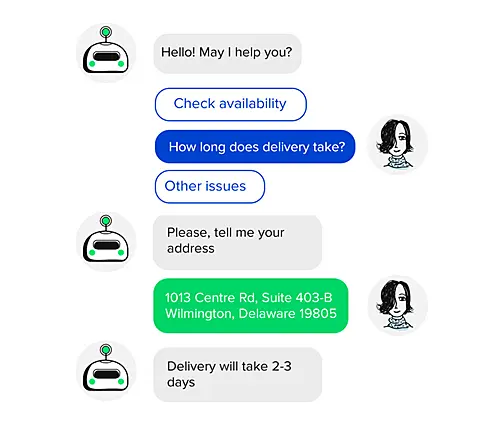 - Chatbots: Businesses can use chatbots to process conversations and deliver automated responses to customers with a "bot" personality. This artificial intelligence replaces the need for live customer service agents.