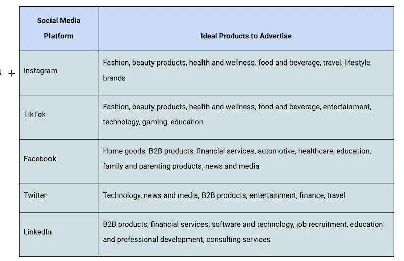 Of course, these are just general guidelines, and the types of products that perform best on each platform can vary depending on your audience and the specific features of each platform. It's always a good idea to do your own research and experiment with different types of content and products to see what resonates with your followers.
