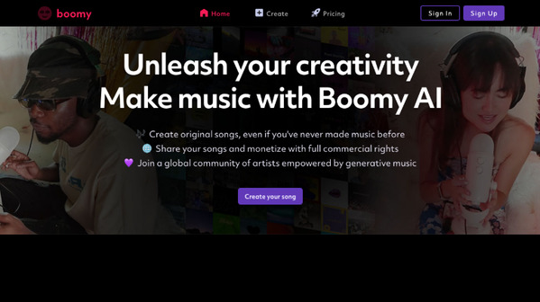 Boomy offers instant original, royalty-free music, prioritizing speed and ease for creators, game developers, or anyone needing background music without traditional complexities.
