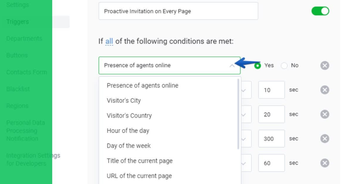 Depending on the nature of your business, you can select and configure the live chat triggers that meet your aims and objectives.