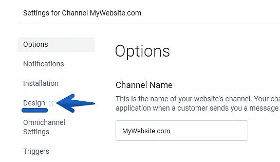 To edit the design of your live chat widget, simply log in to our Desktop or Web app and go to Manage -> Channels -> Settings and click on Design in the left menu: