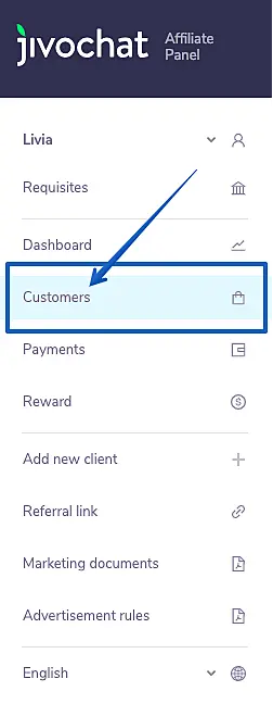 Step 5. Go back to the Affiliate Panel, click on Customer and check if the client is listed on your account.