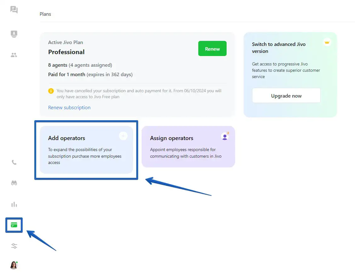 VIPPROPlease follow the steps below to purchase extra licenses for your existing subscription of JivoChat Pro:
