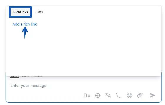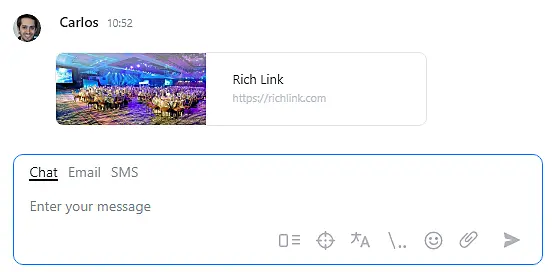 After creating the Rich Link, you can send it at any time during a conversation by pressing the menu to open the list of Rich Links one more time and click the desired Rich Link to send it in chat.