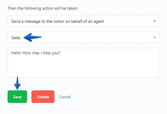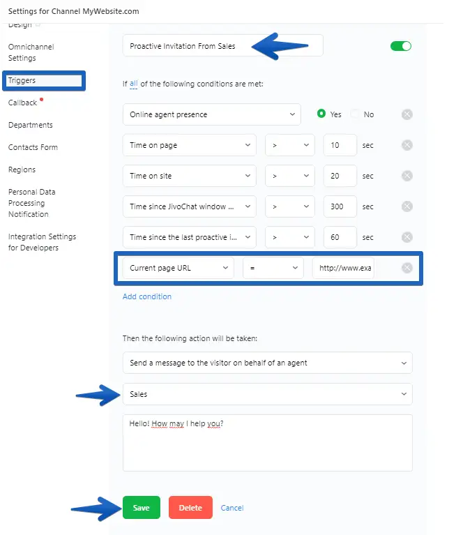 That's it. The task is completed. Now proactive invitations will be shown from agents of each department depending on the URL of the page.