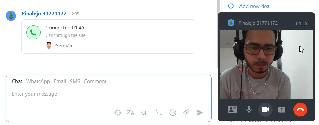 In order to make a video call, to connect with a client, you need to click on the Video call button in the upper right corner. The call can only be initiated by the agent.