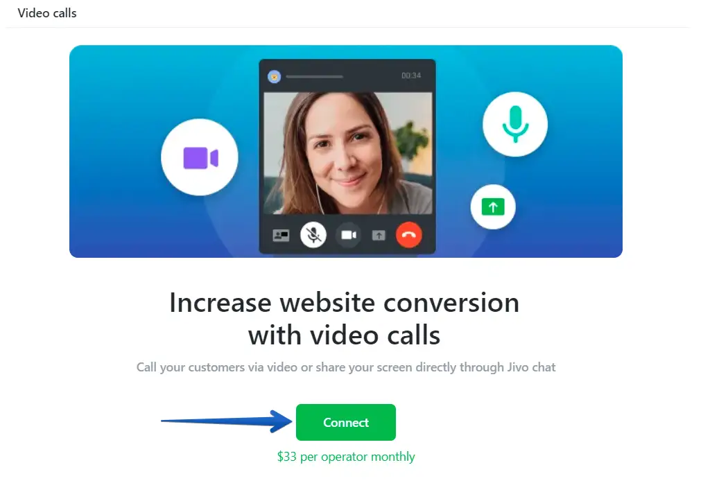 We are happy to introduce our new feature: video calls via chat with screen sharing. With the help of this new tool, you can increase the conversion rate from visitor to a paid customer by presenting a product or service via video. You can also show a website or presentation on your screen. JivoChat video calls helps you to create personalized communication with the customer and reduce agent's time to solve issues about a product or a service.
