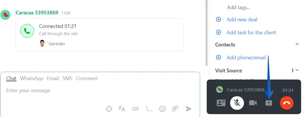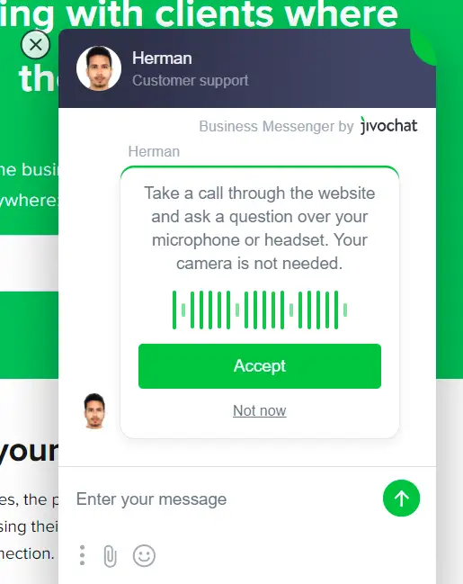 When you click on the Accept button , a new tab or pop-up window will open - it depends on the browser you are using. If the client clicks on not now , the call will be rejected, and a record of an unsuccessful outgoing call will appear in the chat history. A headset is required for conversation. Make sure your browser has allowed microphone access . If access to the microphone is not allowed, the operator's call will continue, and the browser will ask for access one more time. If access is not granted, the call will be terminated as unsuccessful with the reason the client is busy