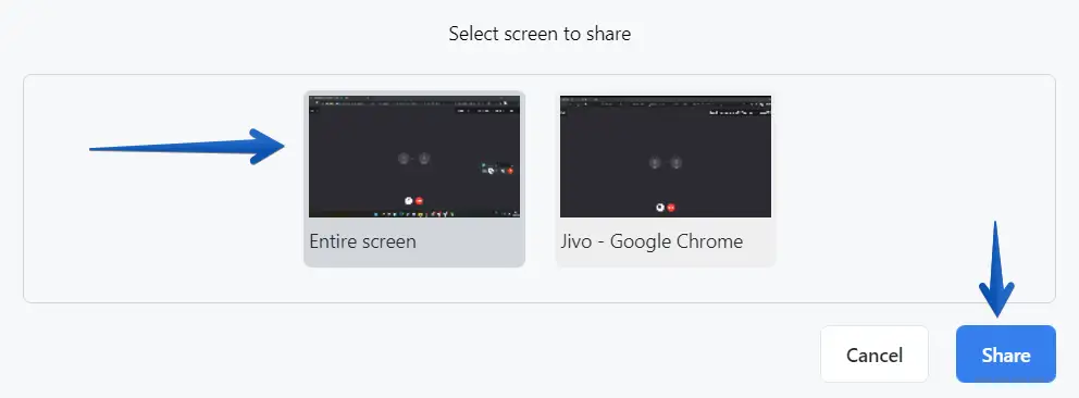 Select the browser tab, entire screen or window of the desired program to showcase and click Share