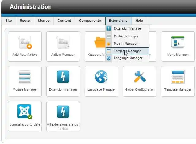 Go into your site’s admin panel, then navigate to the Template Manager.
