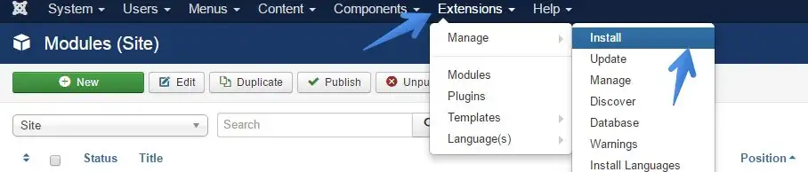 Next, go into the admin panel and navigate to the Module Manager.