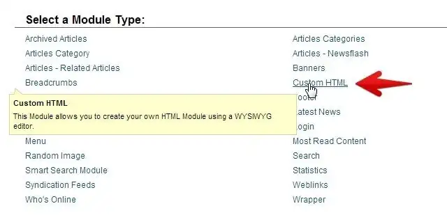 Create a new module, selecting Custom HTML as the module type.