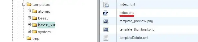 Navigate to: Templates/Your default template/Index.php and open up the index.php file.
