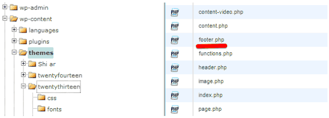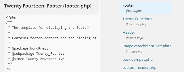 Select the «footer.php» file and edit it.