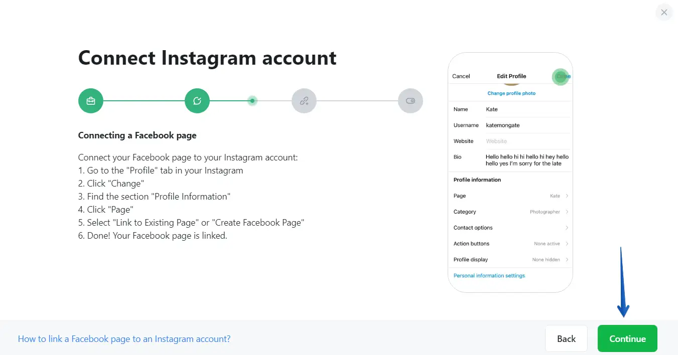 - Your Instagram account must be connected to a Facebook page.
