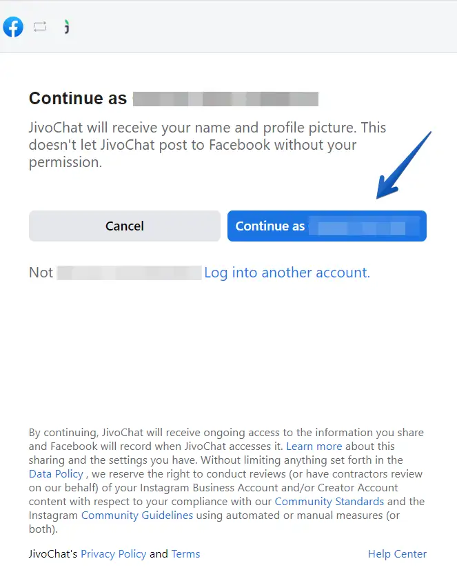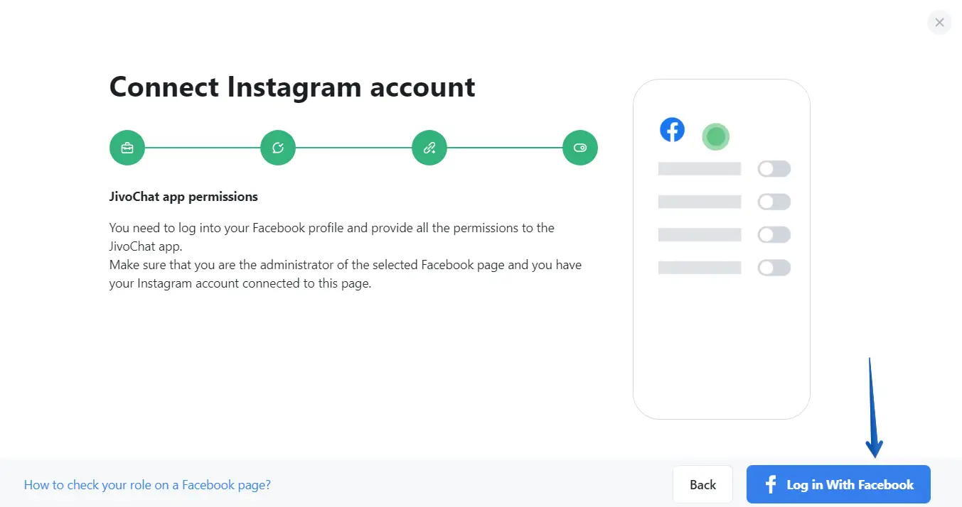 Now, you will need to login with your Facebook account. Make sure it is the account from which you administrate the pages and Instagram: