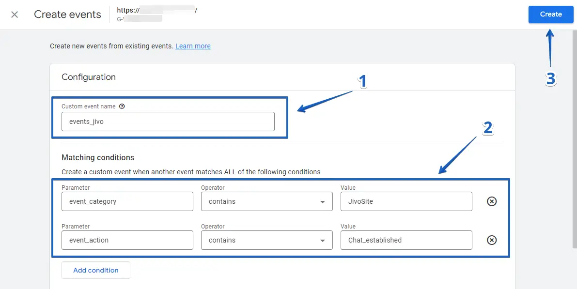 With the new updates, JivoChat events are passed to Google Analytics 4 automatically. However, if you want to track conversion using goals, this will already need to be set up additionally.
