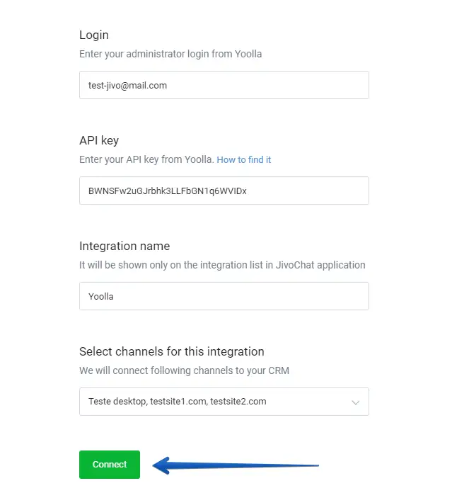Done. After finishing chats in JivoChat app, you will receive data directly to your CRM. After connecting, the integration will appear in the "Connected integrations" list, where you can change its settings and view the event logs.