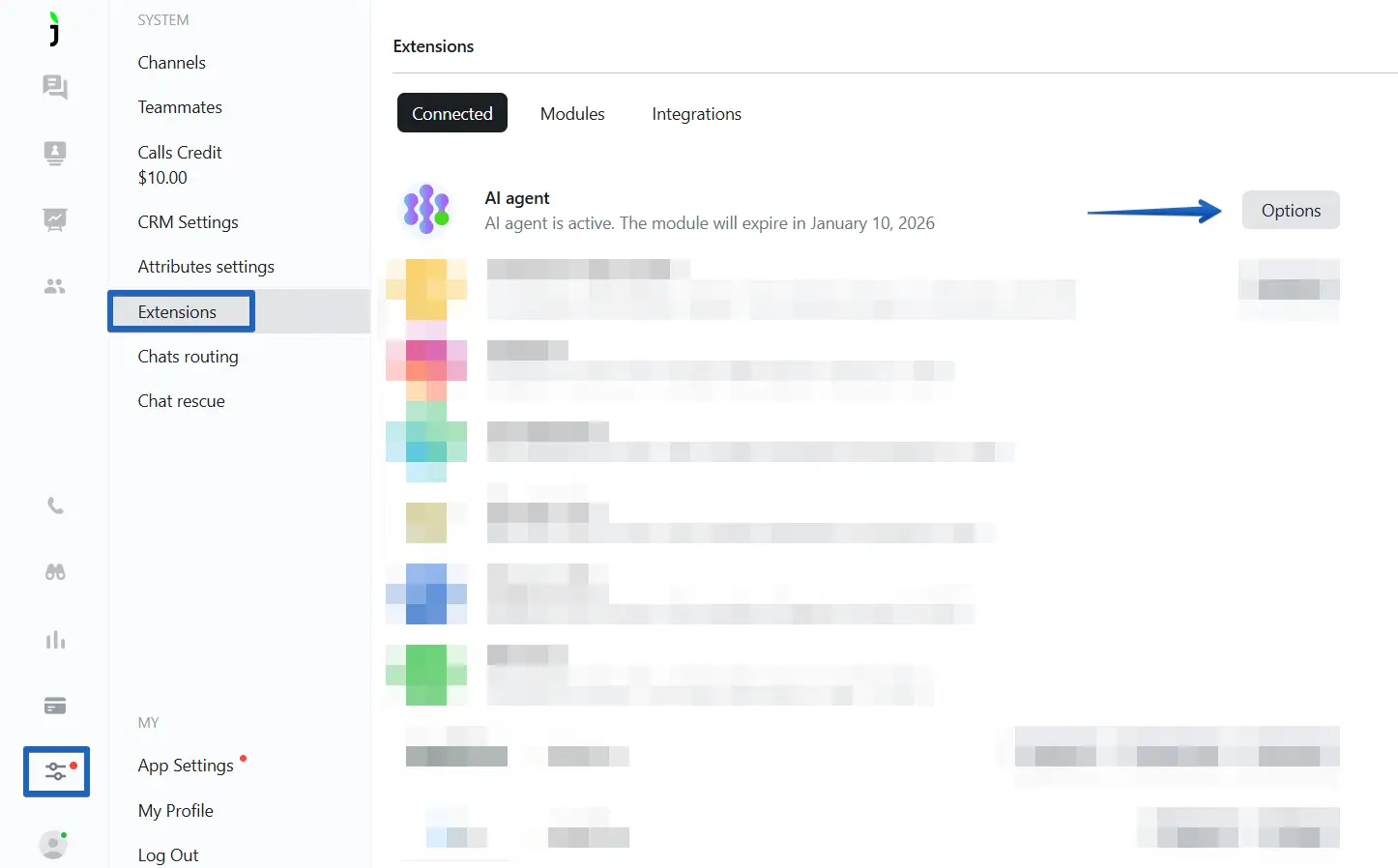 To activate it, you need to purchase the AI Agent module in Extensions > Modules.