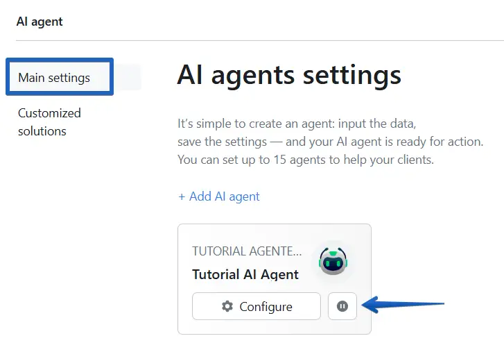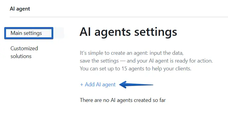 In the Main settings section, click Add AI Agent. You can add up to 15 AI Agents.