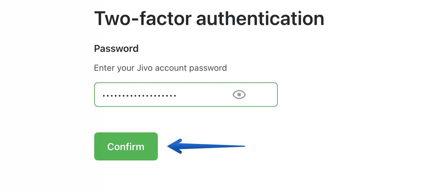 Enter the code in the corresponding field in JivoChat and press "Confirm".