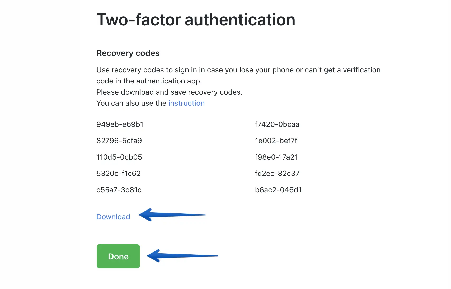 Please, store the codes in a secure place. In case there's a risk they could be compromised — reconnect 2FA for your account.