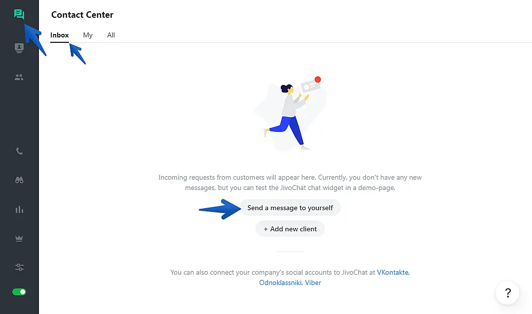 First, access your JivoChat web app or one of our Desktop apps and start a chat with yourself, or open any existing chat archive on your account: